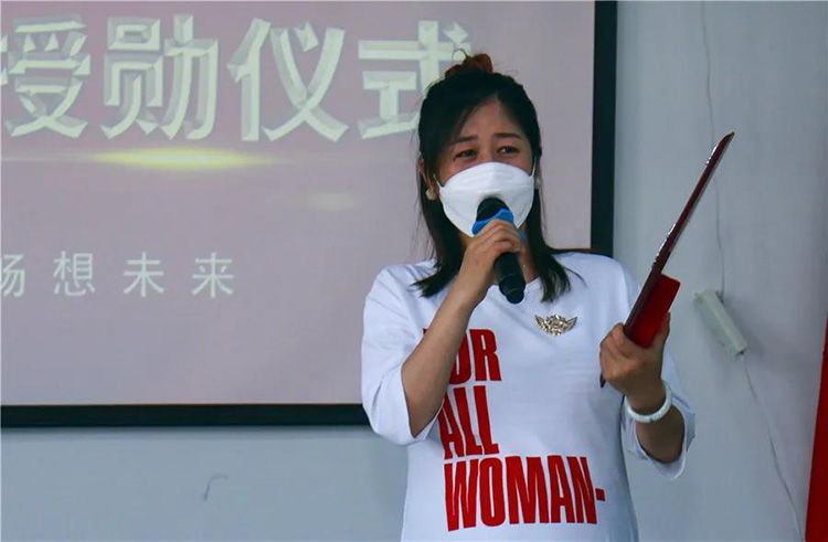 乾港集團董事長安總和集團網(wǎng)絡部總經(jīng)理丁總,分別為工作滿五年的元老授予特別定制的勛章,相信這份榮耀將伴隨她們?nèi)〉酶蟮某煽?,在各自崗位中有更好的突破。緊接著乾港集團各部門的小伙伴們也為元老們送上了鮮花、祝福和精心挑選的禮物。